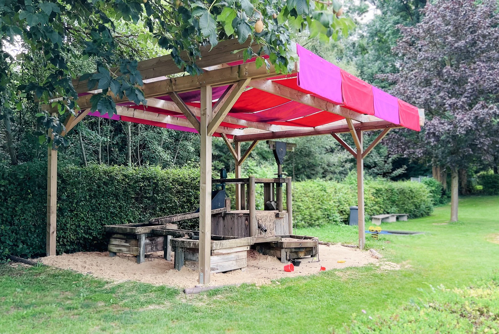 Kinder können sich auf dem Spielplatz, an der Matschanlage und dem Bolzplatz austoben, während ein Kickertisch und Gesellschaftsspiele für Unterhaltung sorgen.